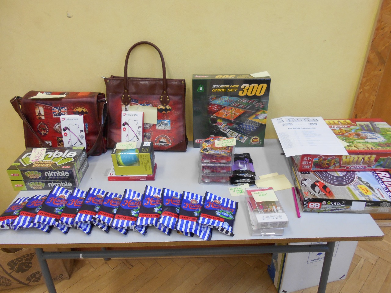 ceny do školních soutěží: soutěž ve sběru starého papíru (třídy i jednotlivci) + turnaj v dámě (1. stupeň) a piškvorkách (2. stupeň) + pěvecká soutěž X-faktor: 10.518 Kč
